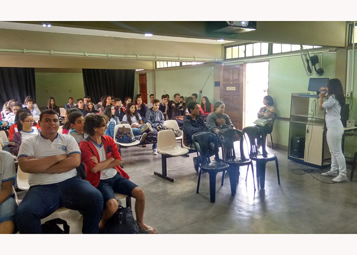 As alunas do 6º período de Biomedicina da UNIFENAS, câmpus de Divinópolis, Isabela Estevan e Fernanda Laranjo, proferiram palestras sobre a “Gravidez na adolescência” e “Infecções sexualmente transmissíveis” para população da cidade e região, em especial alunos de escolas públicas e privadas, do EJA (Educação para Jovens e Adultos), comunidades rurais, bairros periféricos e funcionários da área da saúde. Na foto, uma das palestras foi proferida na Escola Estadual Monoel Correa Filho.