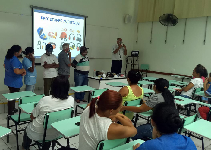 O SESMT (Serviço Especializado em Engenharia de Segurança e em Medicina do Trabalho) da UNIFENAS promoveu uma capacitação sobre o uso de EPI (Equipamento de Proteção Individual) relacionado à proteção auditiva e respiratória (foto). O objetivo, segundo dados fornecidos por Alaércio da Silva Ribeiro Júnior, técnico de segurança do trabalho, foi instruir os colaboradores do setor de higiene e limpeza quanto às normas de segurança, de forma a diminuir “ao máximo o número de acidentes de trabalho”. O aspecto legal, os conceitos, as causas e os efeitos do acidente de trabalho foram abordados por meio de palestra e uso de recurso audiovisual, no dia 24 de janeiro, no câmpus de Alfenas. Foram cerda de 3h30min, e o treinamento contou com parte teórica e prática. Para que chegue aos demais setores da instituição, a capacitação é desenvolvida ao longo do ano.