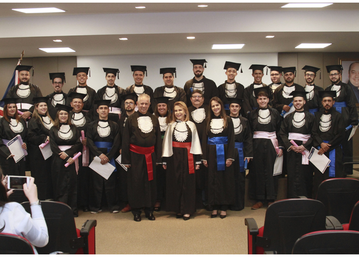 A conquista do diploma superior foi alcançada por formandos de Agronomia, de Ciência da Computação, de Ciências Contábeis, de Medicina Veterinária e de Psicologia da UNIFENAS, câmpus de Alfenas. Esta colação ocorreu no dia 22 de março de 2019, no auditório Professor Edson Antônio Velano (foto). Além dos familiares, a solenidade contou com as presenças da reitora Professora Maria do Rosário Araújo Velano; o Professor Rogério Ramos do Prado, diretor de extensão de assuntos comunitários; o professor Paulo Roberto Corrêa Landgraf, coordenador do curso de Agronomia; e a professora Flávia Aparecida Oliveira Santos, coordenadora do curso de Ciência da Computação.