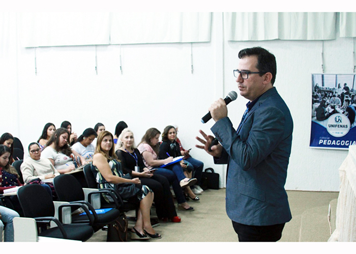A convite do curso de Pedagogia, alunos e professores dos cursos de Administração, Pedagogia, Educação Física e Nutrição se reuniram na Sala de Ventos I da UNIFENAS, câmpus de Alfenas, para prestigiarem a palestra “Os Novos Contornos da Responsabilidade Social no Brasil: um olhar sobre os Projetos Sociais Educacionais”, proferida pelo professor André Luiz Silva.