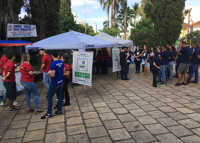Se você recebeu no ano de 2018 mais de R$ 28.559,70, fique atento, pois você tem até o final do mês de abril para entregar à Receita Federal a sua declaração de imposto de renda, e este não é o único critério. Esclarecer a população sobre as regras para manter-se em dia com o fisco foi o objetivo da 2ª edição do “NAF na Praça”, desenvolvido pelos alunos do 3º e 7º períodos do curso de Ciências Contábeis e integrantes do NAF UNIFENAS (Núcleo de Apoio Contábil e Fiscal). Supervisionados por professores (Ana Maria, Jefferson Soares de Avelar e Juliana Mafra), eles estiveram na Praça Getulio Vargas de Alfenas, no dia 6 de abril.