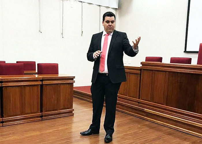 Egresso da UNIFENAS, Dr. Eduardo Pereira Dias (foto), advogado e vice-presidente da subseção da OAB/Alfenas, proferiu palestra sobre sua carreira profissional aos alunos do 7º período de Direito, câmpus de Alfenas. O trabalho faz parte do projeto "Ciclo de Palestras Jurídicas", promovido pela coordenação do Núcleo de Prática Jurídica, que tem como objetivo trazer ex-alunos da instituição que se destacam no mercado de trabalho para que os acadêmicos conheçam tudo o que o Direito lhes proporciona.