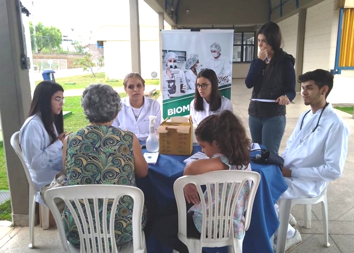 Em comemoração ao Dia das Mães, alunos do curso de Biomedicina (foto) participaram da “Tarde das Mães”, no Sest Senat, em Varginha. A importância da educação na área da saúde e de se manter uma rotina saudável foram as atividades desenvolvidas pelos estudantes. A ação ocorreu no dia 10 de maio, e, segundo depoimentos, foi muito bem organizada.