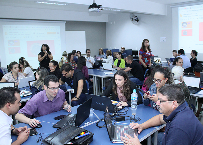 Dinâmicas em grupo, discussões, trocas de experiências, reflexões sobre a educação contemporânea foram proporcionadas pela capacitação. Ao discorrer sobre as metodologias criativas, Leila Ribeiro, doutora em Ciência da Informação, disse que não é nada mágico, apenas algo que você cria quando se pensa mais amplo. Segundo ela, não há mistérios, pois todos somos criativos na resolução de problemas. Levar essa metodologia para a sala de aula é usar a criatividade para dar protagonismo aos alunos, com consequente engajamento. “Esse é um ponto que difere de outras metodologias, quando você tem esse engajamento, protagonismo tanto do professor, quanto dos alunos.” Com acrescentou, o modelo anterior de aula refletia o momento histórico, “da revolução industrial e tudo mais. Agora a gente vive em outro momento e a gente precisa adequar o nosso formato de educação”.