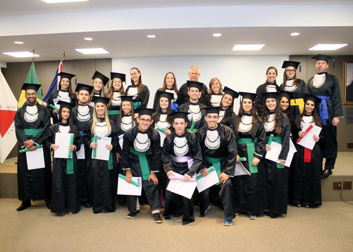 Presidida pelo diretor de Extensão e Assuntos Comunitários, professor Rogério Ramos do Prado, ocorreu, no dia 30 de maio, a colação de grau em separado dos cursos de Administração, Biomedicina, Direito, Engenharia Civil, Farmácia, Medicina Veterinária, Nutrição e Psicologia. Fizeram parte da mesa diretora dos trabalhos os coordenadores dos cursos Juliana Mafra Salgado Andrade (Administração), Regiane Tercetti Rodrigues (Biomedicin), Ivânia Goretti Oliveira Pereira (Direito) e Carolina Soares Horta de Souza (Nutrição).