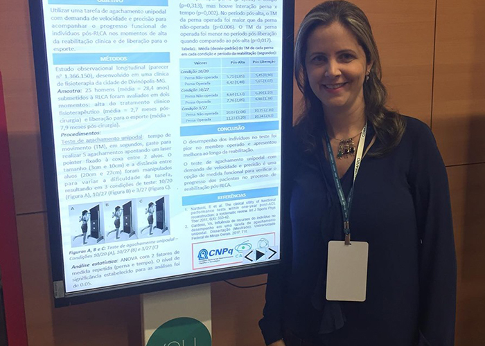 Ela comenta que o trabalho faz parte do seu estudo de doutorado que irá concluir esse ano, na UFMG, sob a orientação do Prof. Dr. Sérgio Teixeira Fonseca. Além da apresentação oral, professora Cecília apresentou outro trabalho em formato de pôster eletrônico.