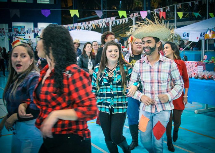 O Centro Esportivo Universitário da UNIFENAS recebeu, pelo terceiro ano consecutivo, o Arraiá Pedagógico. Comidas típicas de festas juninas e bingo foram partes do momento de confraternização que teve seu ápice com uma quadrilha (foto). Não só estudantes de Pedagogia, mas de outros cursos, convidados, inclusive da Apae de Areado, entraram na roda e se divertiram. Como destacou a professora Maria Cristina Silva, coordenadora do curso de Pedagogia, o evento, organizado por alunos do 1º e 3º períodos, ocorre após um congresso de programação extensa e precede a prova substitutiva, exame global, exame final, ou seja é um “momento para respirar e recuperar as energias”.