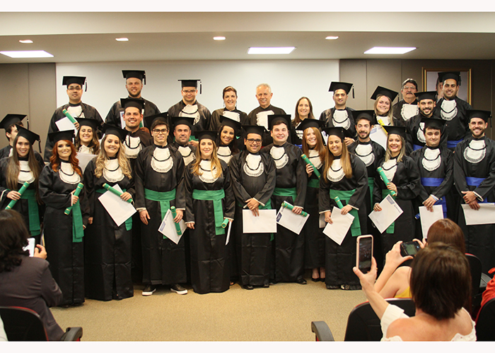 Ocorreu, na Sala Professor Edson Antônio Velano, dia 30 de julho, a colação de grau em separado dos formandos em Agronomia, Ciência da Computação, Ciências Contábeis, Farmácia, Medicina e Medicina Veterinária (foto). Acompanhada de amigos e familiares, a cerimônia foi presidida pelo Professor Rogério Ramos do Prado, diretor de extensão e assuntos comunitários, juntamente com os coordenadores Paulo Roberto Corrêa Landgraff (Agronomia), Juliana Mafra Salgado Andrade (Ciências Contábeis) e Annie Beatriz de Carvalho (Medicina).