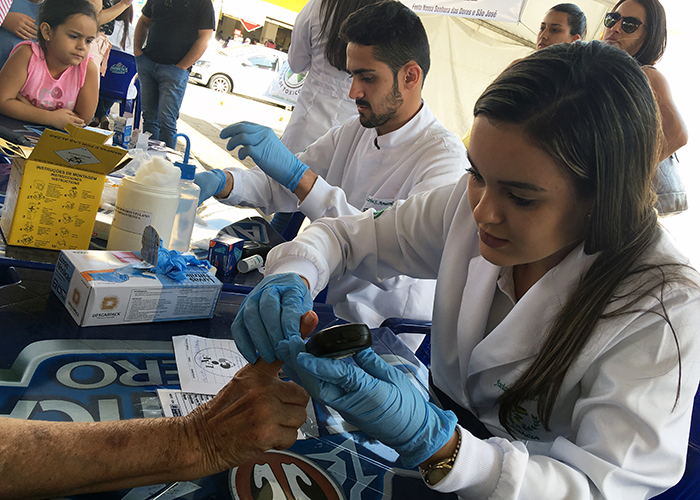 Aferição de glicemia foi uma das atividades desenvolvidas pelos universitários