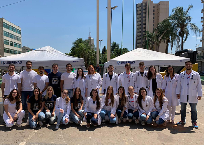 Por iniciativa da Liga de Endocrinologia e Metabologia do curso de Medicina da UNIFENAS, foi realizado na Praça Getúlio Vargas de Alfenas o “Obesidade? Tô Fora!”. O evento teve por meta conscientizar a população dos riscos a que as pessoas obesas estão expostas. A atividade contou com a contribuição das Ligas de Saúde mental, de Cardiologia, de Medicina Esportiva e de Clínica Cirúrgica.