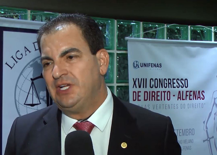 O professor e desembargador Gilson Soares Lemes durante evento realizado na UNIFENAS, câmpus de Alfenas
